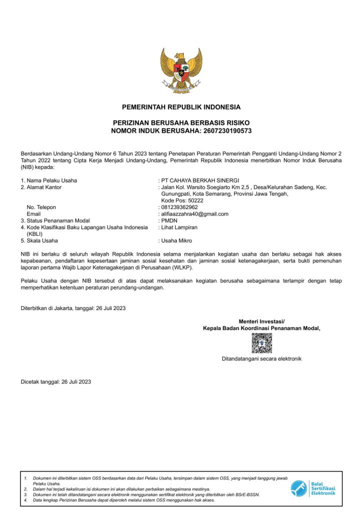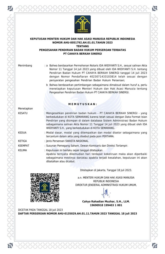 Berikut adalah dokumen dan sertifikat perijinan dari perusahaan kami: